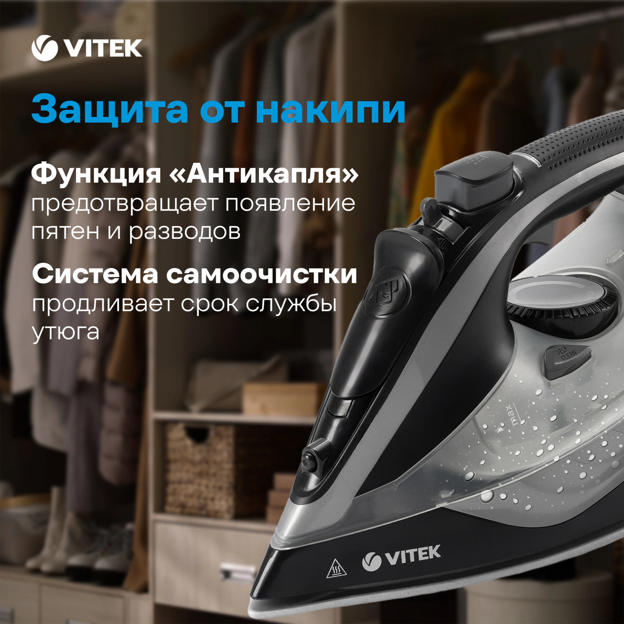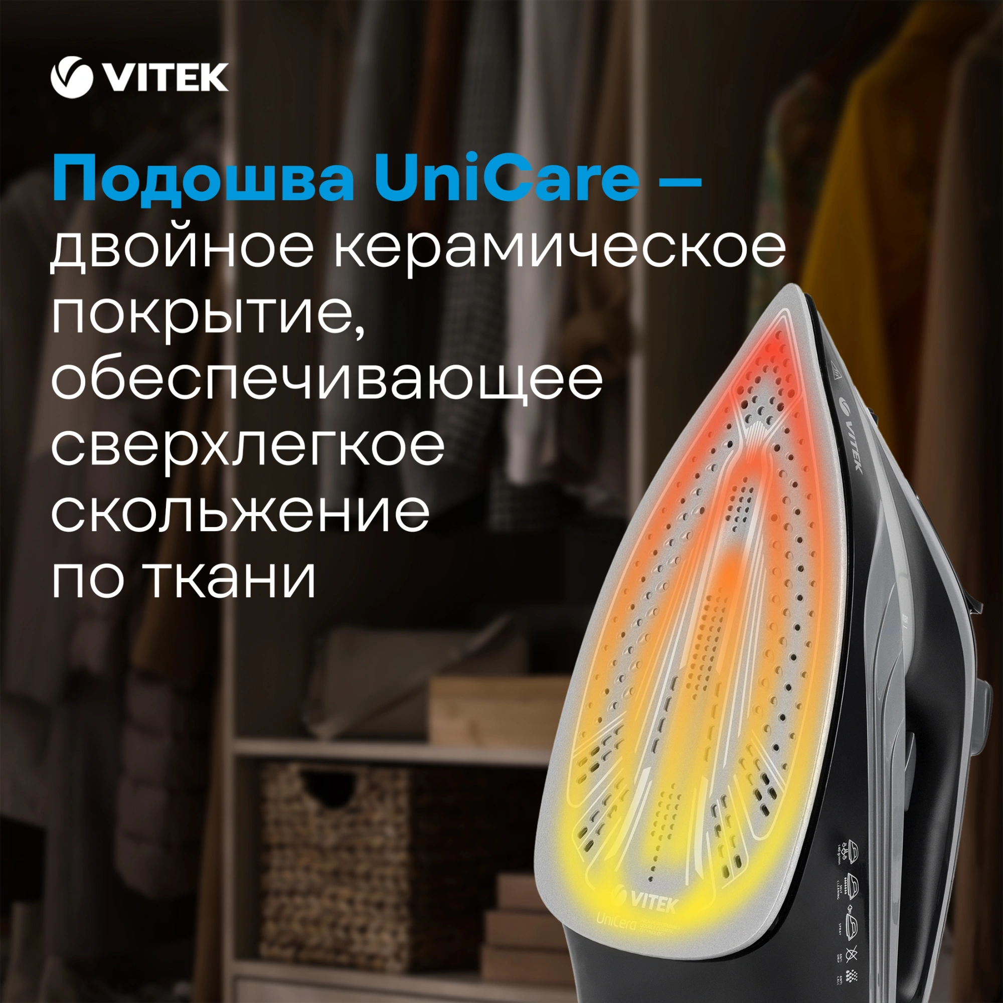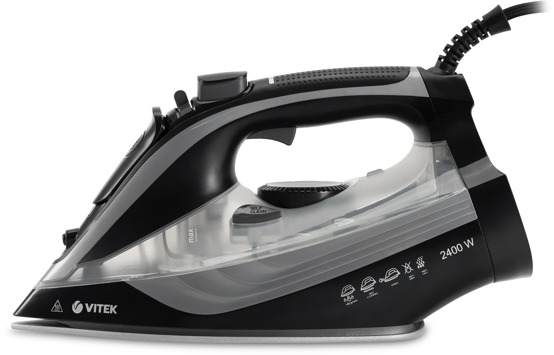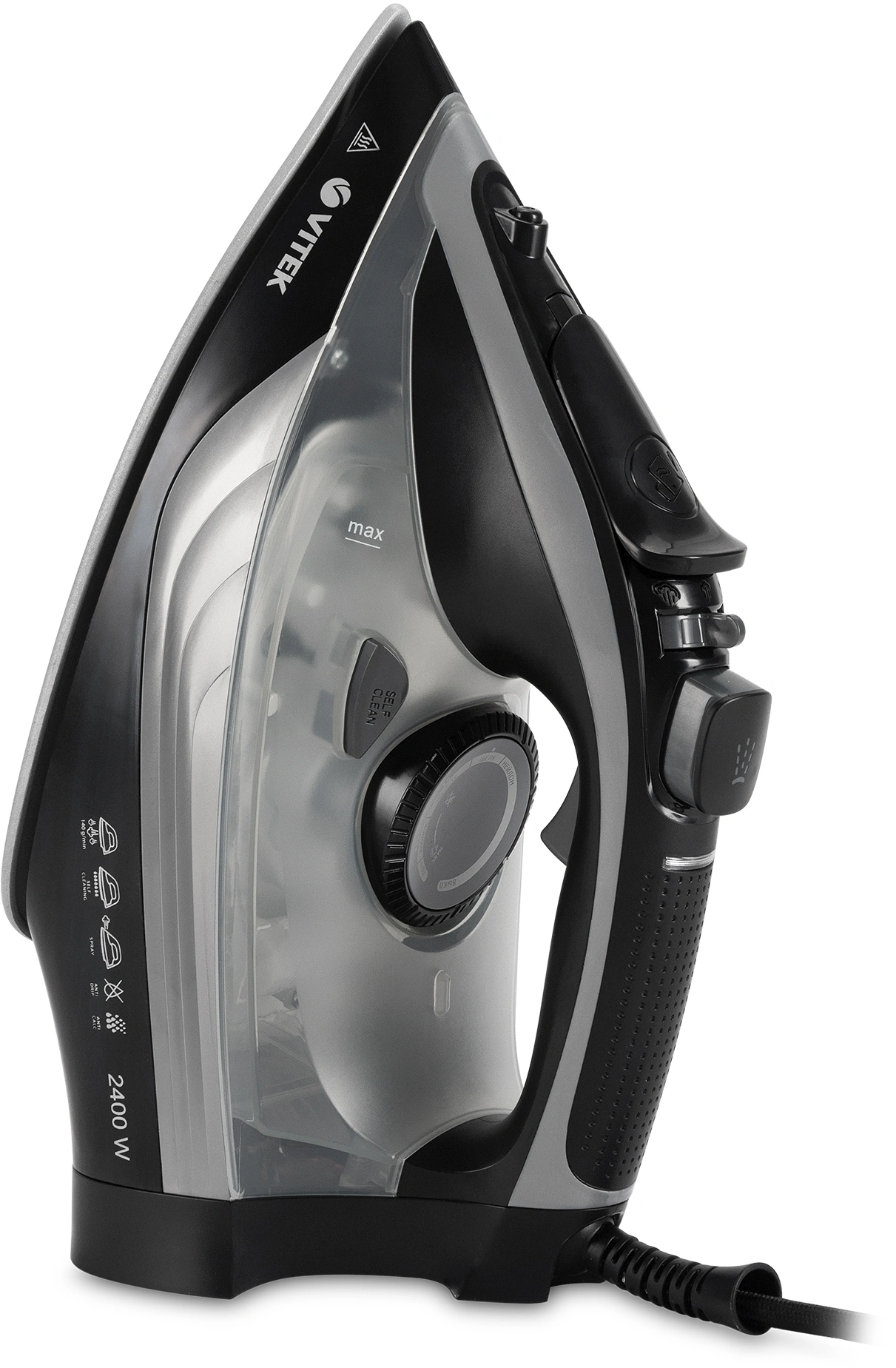 Утюг VITEK VT-8349 с максимальной мощностью 2400 Вт поможет быстро и легко привести в порядок вашу одежду. Подошва прибора имеет уникальное двойное керамическое покрытие UniCera, которое обеспечивает легкое скольжение по любому виду ткани. При наличии серьезных заломов на ней можно воспользоваться функцией разбрызгивания. В режиме отпаривания утюг очень эффективен: паровой удар в 140 г/мин гарантирует идеальный результат. Встроенная защита от накипи, а также система самоочистки и функция «Антикапля» способствуют особому комфорту в использовании прибора. Купите утюг VITEK VT-8349 и получайте удовольствие от обычной заботы о вещах!