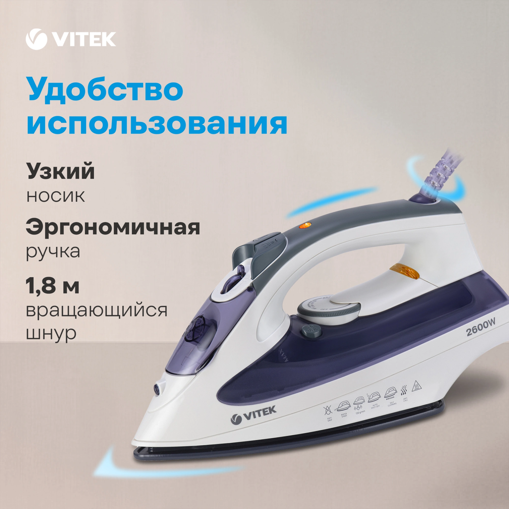 Идеально отгладить одежду из любого вида ткани поможет вам утюг VITEK VT-8356 с максимальной мощностью 2600 Вт. Чтобы минимизировать воздействие на самые деликатные ткани, в приборе имеется удобная функция вертикального отпаривания (максимальный паровой удар — 150 г/мин). Объем резервуара для воды составляет 280 мл. Отдельно следует отметить подошву утюга с уникальным керамическим покрытием, обеспечивающим сверхлегкое скольжение по ткани без малейших повреждений. Благодаря функции «антикапля», системе самоочистки и встроенной защите от накипи пользоваться прибором невероятно комфортно. Оставили утюг на доске и ушли на работу? Не беда: устройство отключается автоматически, если оставить его без движения. Купите утюг VITEK VT-8356, чтобы не просто гладить одежду, но и бережно ухаживать за ней.