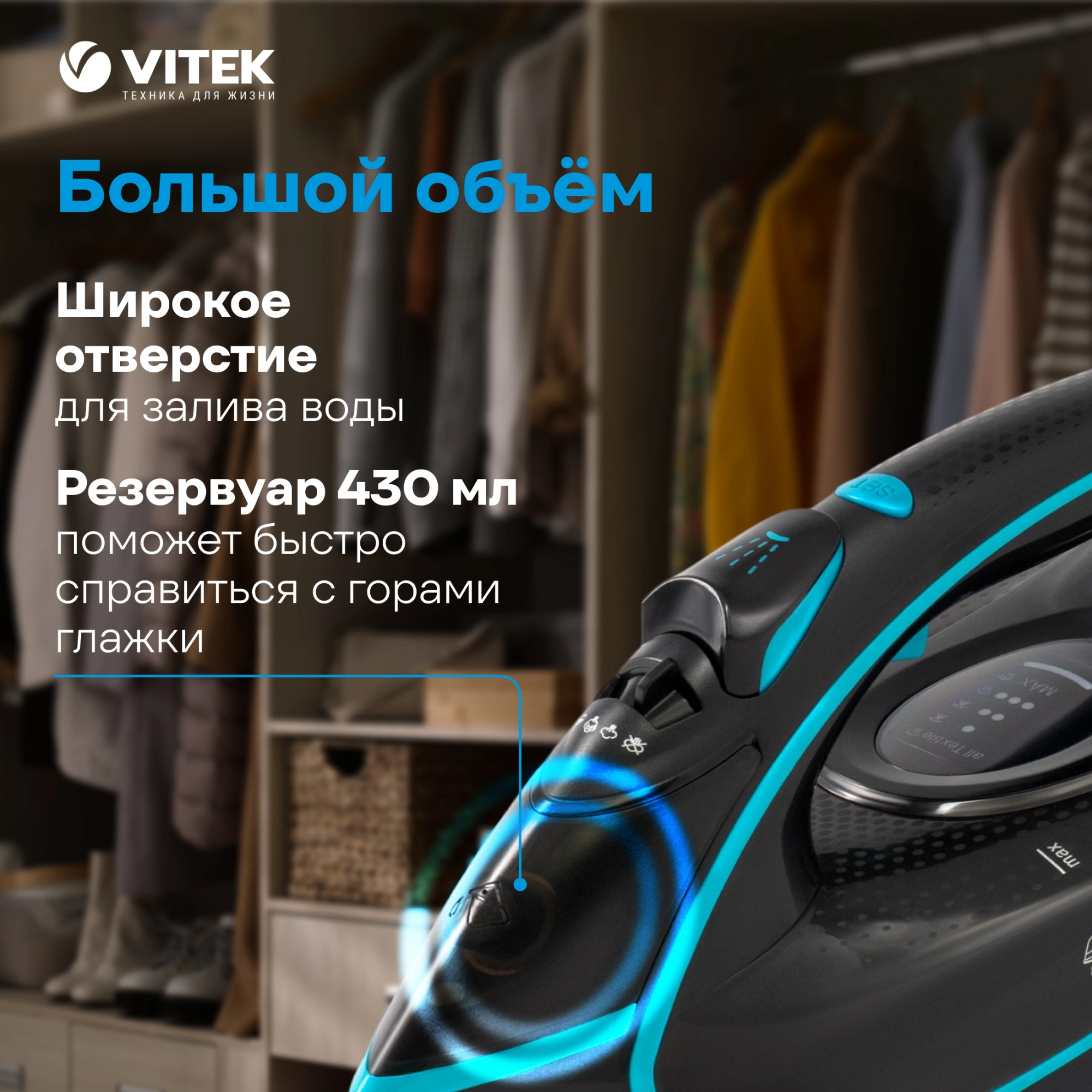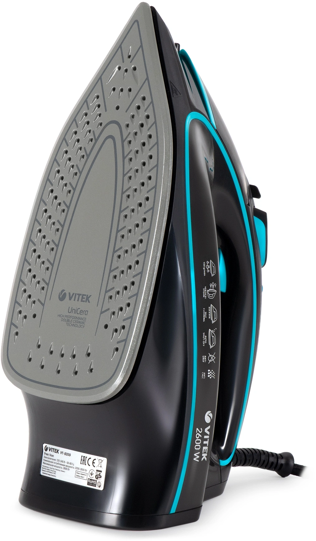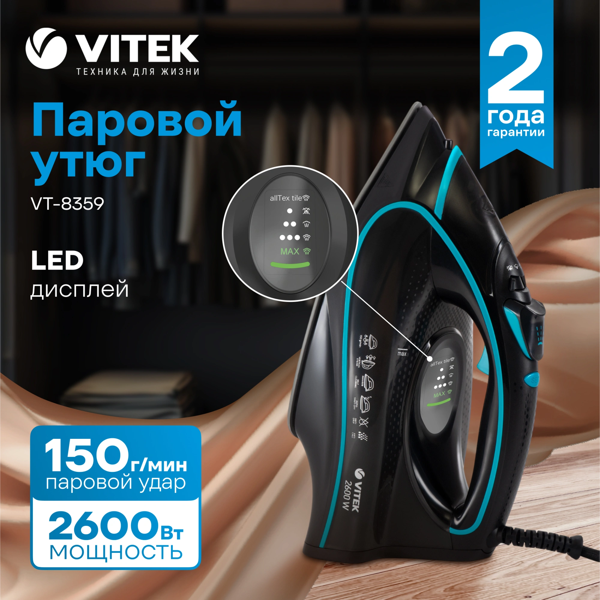 Идеально отгладить одежду позволит стильный утюг VITEK VT-8359 с номинальной потребляемой мощностью 2600 Вт. Прибору можно доверить даже самые деликатные ткани, так как его подошва имеет уникальное керамическое покрытие UniCera, обеспечивающее сверхлегкое скольжение. Информация о выбранном режиме отражается на удобном LED-дисплее. Помимо сухого глажения с режимом разбрызгивания, в утюге имеется удобная функция вертикального отпаривания (максимальный паровой удар — 150 г/мин). Объем резервуара для воды — 450 мл. Благодаря функции «антикапля», системе самоочистки и встроенной защите от накипи, пользоваться утюгом невероятно комфортно. К тому же устройство отключается автоматически, если его оставить без движения. Купите утюг VITEK VT-8359, который превратит процесс глажения в настоящее удовольствие!