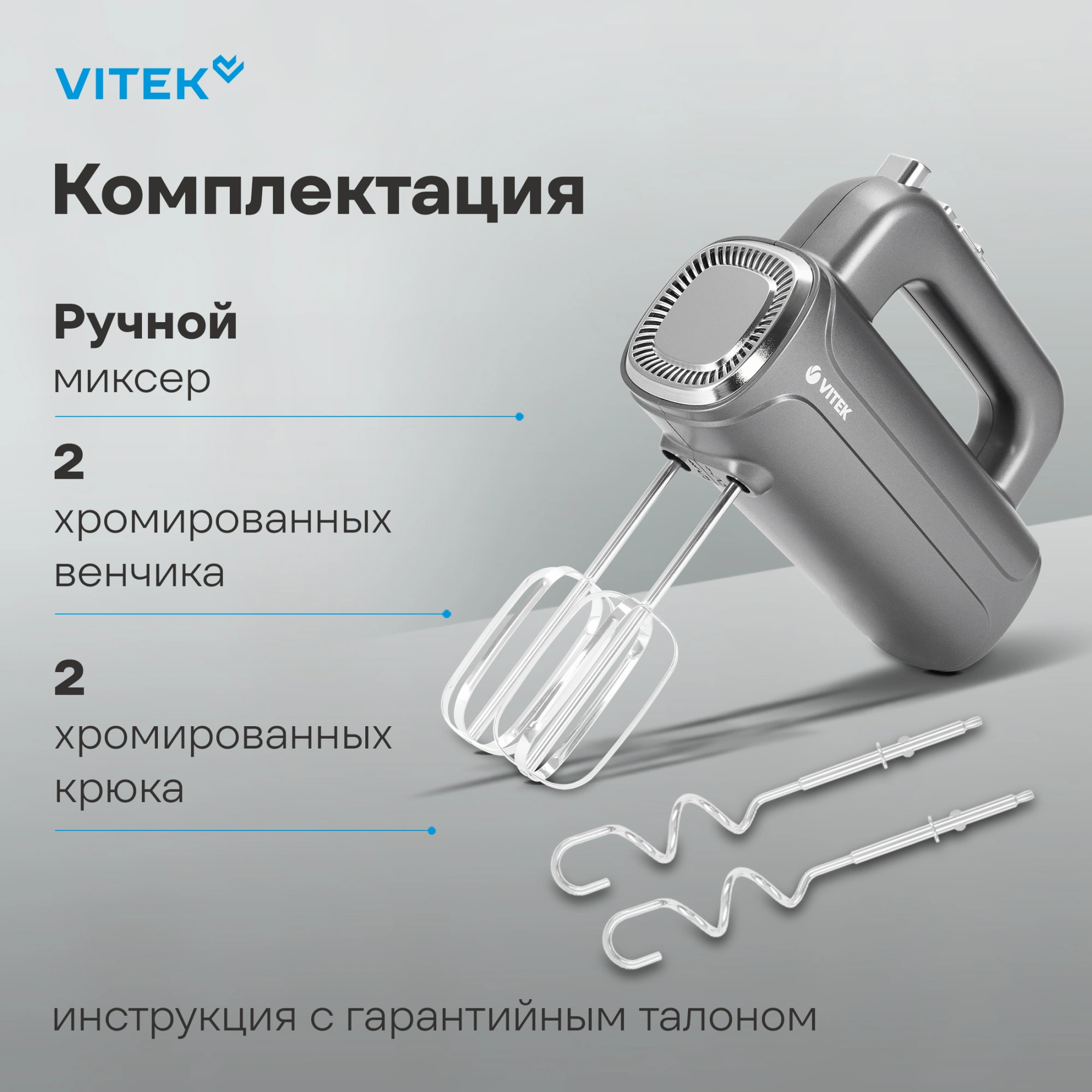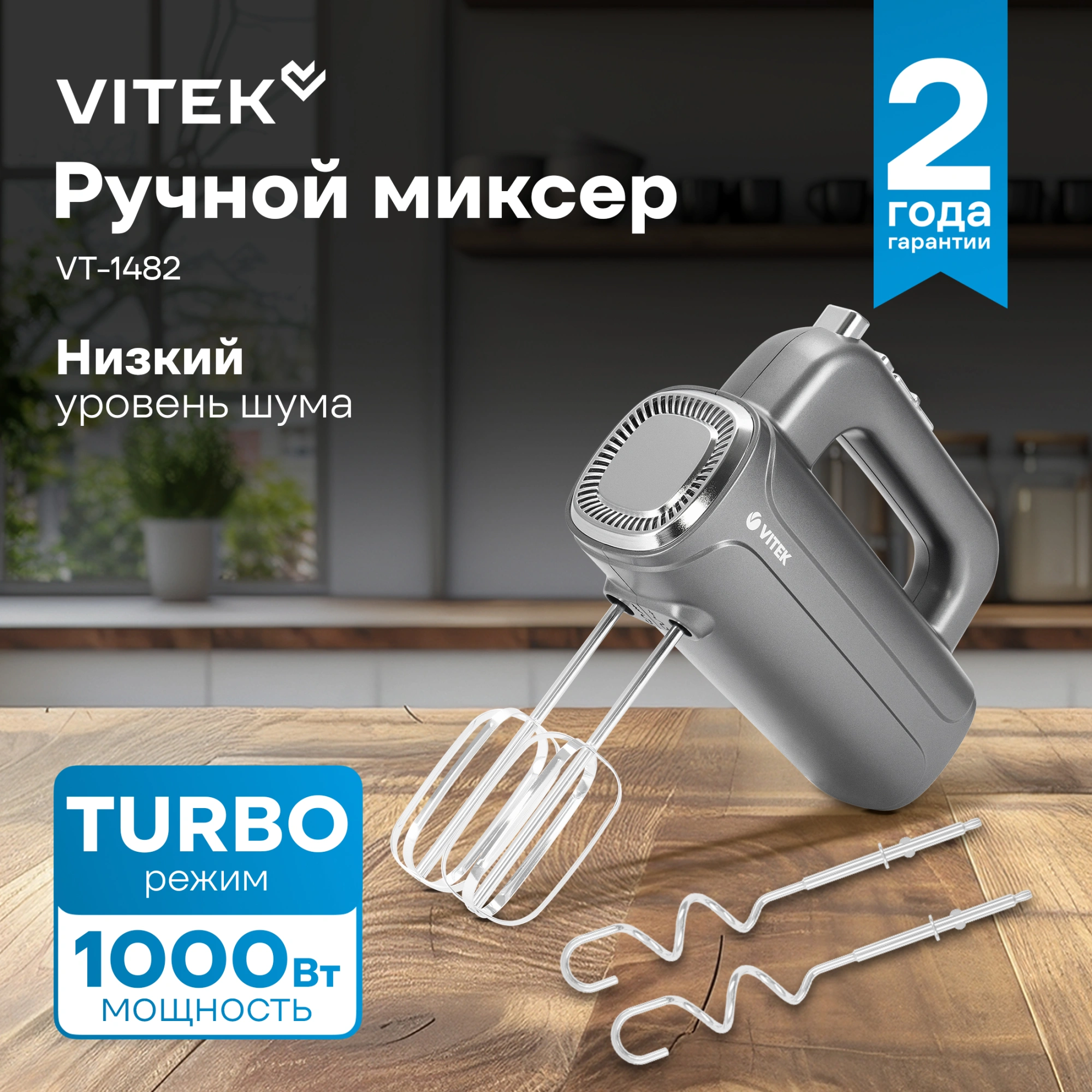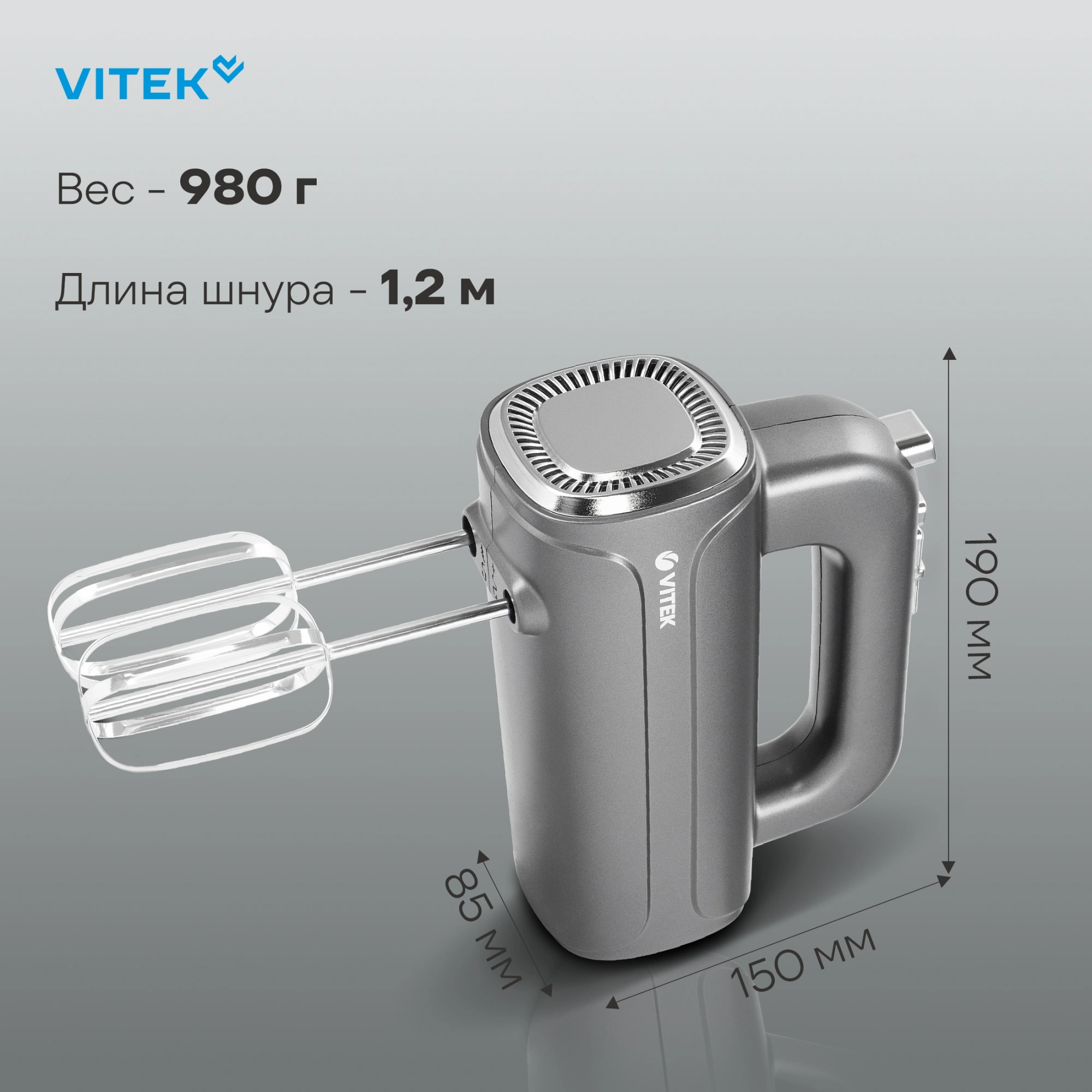 Настоящим помощником в приготовлении домашних десертов и выпечки станет миксер VITEK VT-1482 с максимальной мощностью 1000 Вт. Прибор имеет пять скоростных режимов, которые позволят безупречно следовать всем указаниям рецептов для достижения идеального результата, а также режимом «ТУРБО», обеспечивающим работу на максимальной мощности. В комплект входят два венчика для взбивания сливок, соусов, пудингов, крема, а также два крюка для замеса любого вида теста. Снимаются насадки легко — нажатием одной кнопки. Шнур длиной 120 см способствует удобству в использовании прибора. Купите миксер VITEK VT-1482, чтобы готовить с удовольствием, фокусируясь только на творческой части кулинарного процесса.